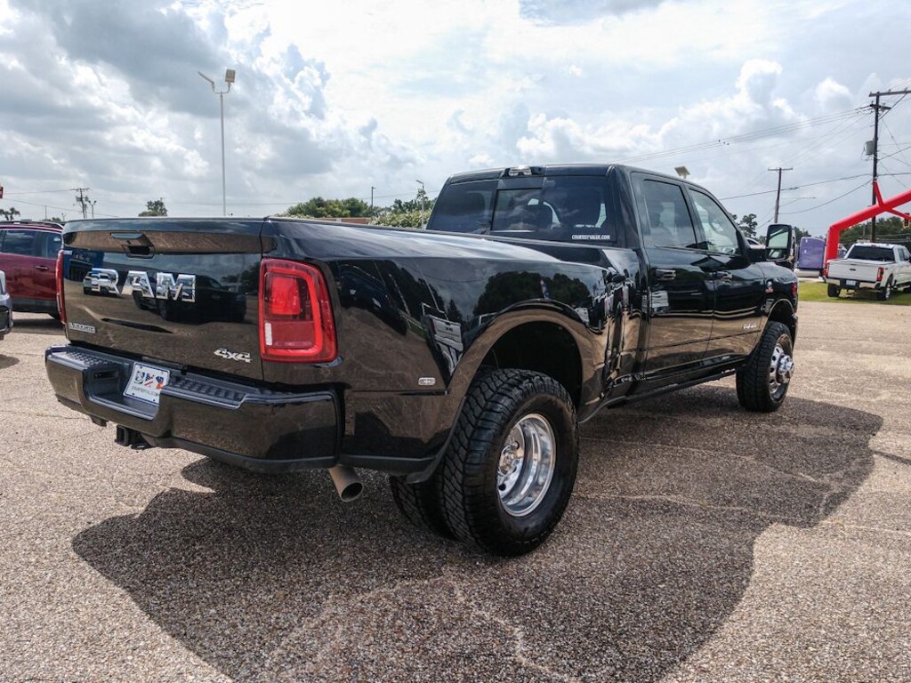Laramie Level 2 Plus Equipment Group: Google Android Auto; SiriusXM Radio Service; Power Adjustable Pedals with Memory; For Details Visit DriveUconnect.com; For More Info. Call 800-643-2112; Integrated Voice Command with Bluetooth; Emergency Vehicle Alert System (EVAS); Power Deployable Running Boards; Auto Power-Folding Mirrors; Mirror Running Lights; Drowsy Driver Detection; MOPAR Deployable Bed Step; Alexa Built-In; Apple CarPlay; Power-Adjustable Convex Aux Mirrors; Active Lane Management System; Forward and Reverse Utility Lights; Disassociated Touchscreen Display; Remote Tailgate Release; 17 Speaker Harman/kardon Premium Sound; #1 Seat Foam Cushion; 2nd Row in Floor Storage Bins; Center Stop Lamp with Cargo View Camera; Rain Sensitive Windshield Wipers; LED Bed Lighting; Traffic Sign Recognition; Connectivity - US/Canada; GPS Navigation; 4G LTE Wi-Fi Hot Spot; Adaptive Steering System; GPS Antenna Input; Exterior Mirrors with Heating Element; Auto Dimming Exterior Mirrors; SiriusXM with 360L; Global Telematics Box Module; Connected Travel and Traffic Services; Foam Bottle Insert (door Trim Panel); Off-Road Information Pages; Selectable Tire Fill Alert; Trailer Tow Pages; Leather Trimmed Bucket Seats; HD Radio; 14.4 Touchscreen Display; Power Heat Fold Memory Telescopic Mirrors; Exterior Mirrors with Supplemental Signals; Exterior Mirrors Courtesy Lamps; Uconnect 5 Nav with 14.4 Display; MOPAR Spray in Bedliner; Auto High Beam Headlamp Control; Chrome Exterior Mirrors; Exterior Mirrors with Memory; Power Adjust Mirrors; Power Telescoping Mirrors; Auto Dimming Exterior Passenger Mirror; Auto Adjust in Reverse Exterior Mirrors. Quick Order Package 24H Laramie. Max Tow Package: Auto Level Rear Air Suspension; 5th Wheel/gooseneck Towing Prep Group. Dual Rear Wheels: Clearance Lamps; LT235/80R17E BSW All Season Tires; 17 Steel Spare Wheel; Box and Rear Fender Clearance Lamps; Center Hub; 6000# Front Axle with Hub Extension; 17 X 6.0 Polished Aluminum Wheels; 14. 000 Lb GVWR. Auto Level Rear Air Suspension. Power Sunroof. Power Deployable Running Boards. Leather Trimmed Bucket Seats. 5th Wheel/gooseneck Towing Prep Group. Center Stop Lamp with Cargo View Camera. Diamond Black Crystal PC. MOPAR Front and Rear Rubber Floor Mats. Clearance Lamps. **Equipment listed is based on original vehicle build and subject to change. Please confirm the accuracy of the included equipment by calling the dealer prior to purchase.**